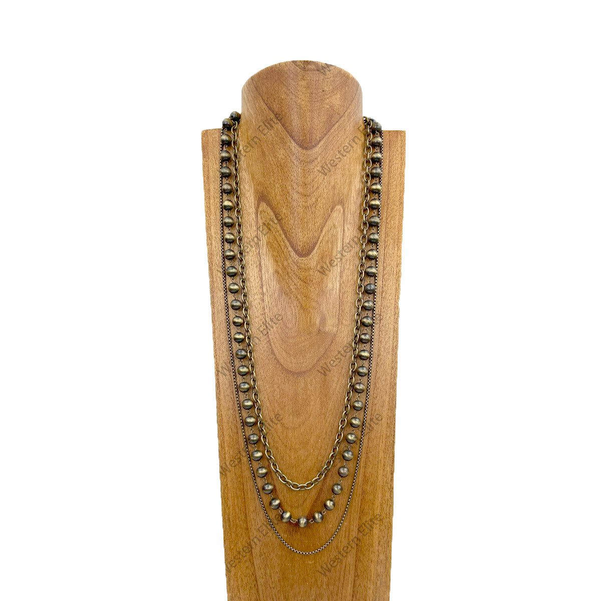 NKZ240330-04 Trible strings brass metal chain Necklace