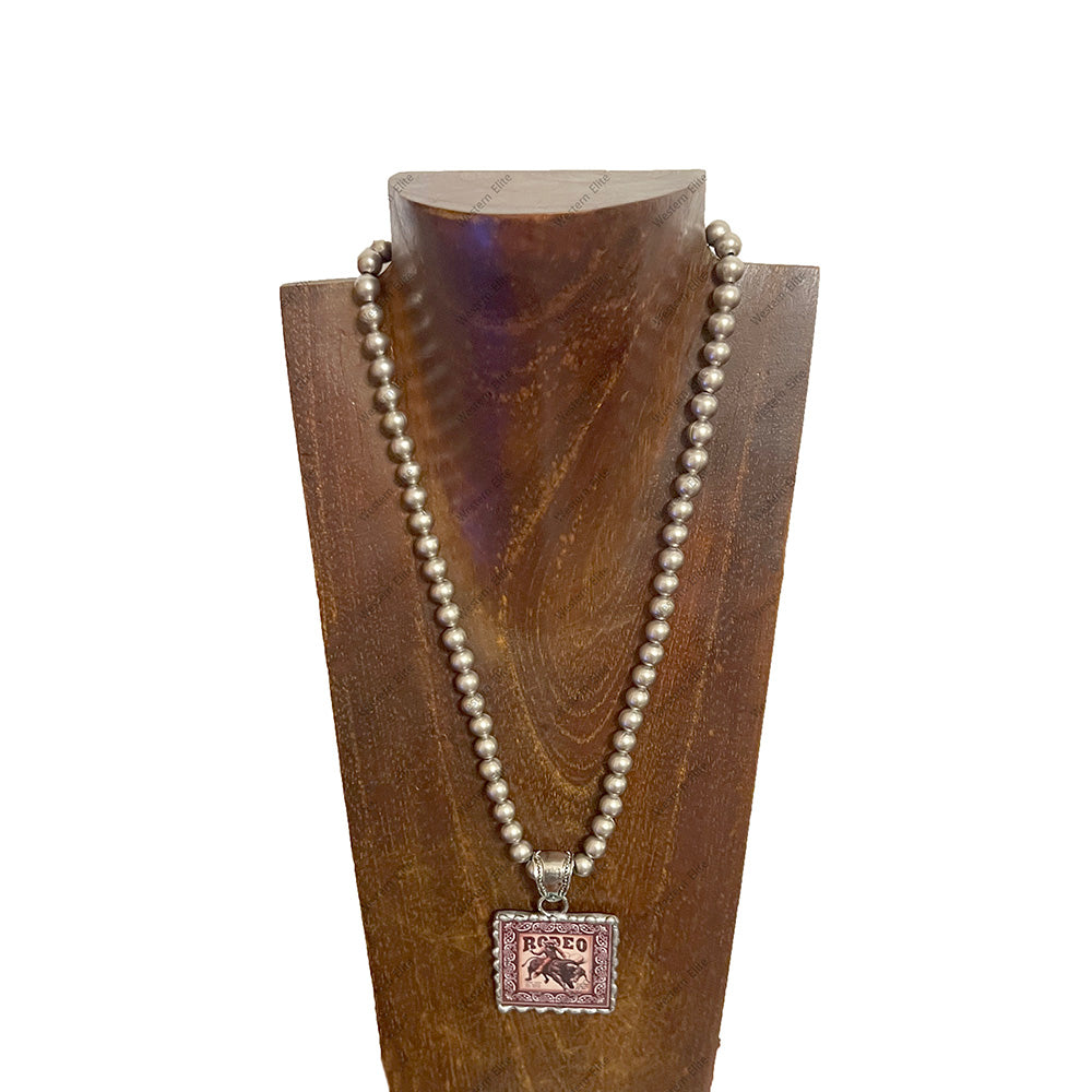 NKZ250549-01 21'' L 8mm metal Navajo pearl beads necklace with ''COWGIRL RODEO'' western picture Pendent
