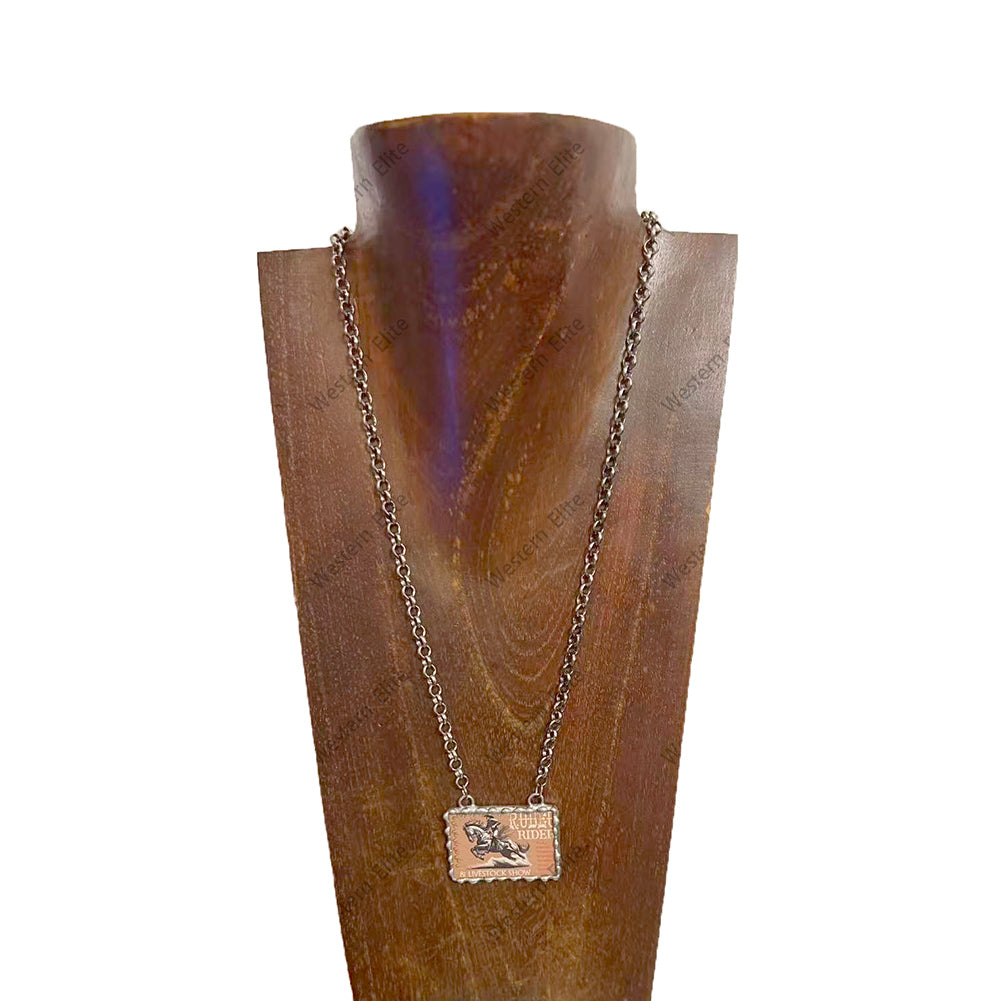 NKZ250554-01 21'' L silver metal chain with western ''COWBOYS'' picture pendent Necklace