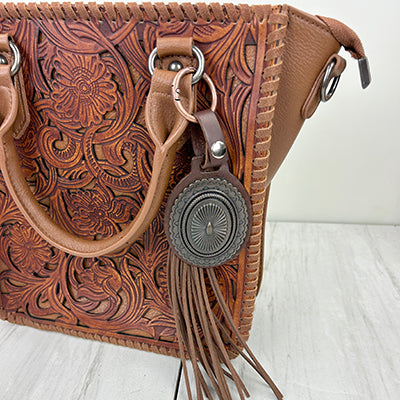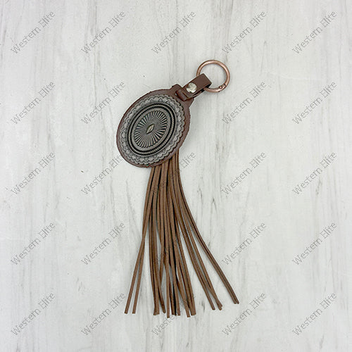 PC260406-19 Western Leather feather with brown tassel Purse charm