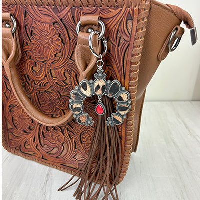 Western Leather feather with brown tassel Purse charm