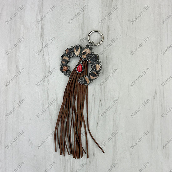 PC260406-22 Western Leather feather with brown tassel Purse charm