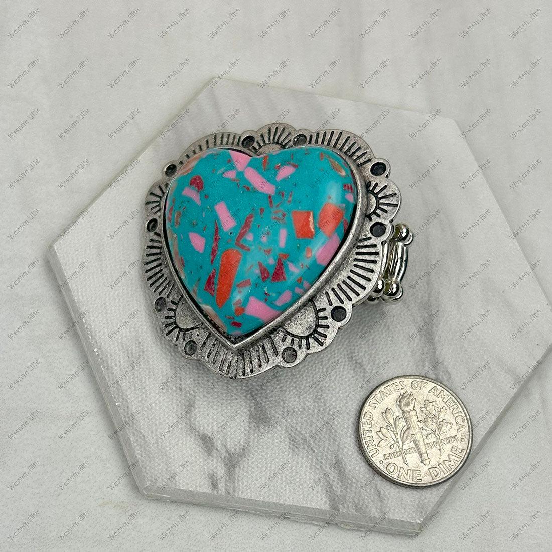 RG250308-01 Silver metal with blue turquoise stone heart strength Ring